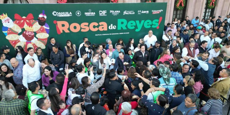Saltillo, Coahuila de Zaragoza; a 06 de enero de 2026.- Desde la capital del Estado, el gobernador Manolo Jiménez Salinas, junto a su esposa Paola Rodríguez López, presidenta honoraria de Inspira Coahuila, partieron y repartieron entre miles de coahuilenses la tradicional Rosca de Reyes, evento con el que finalizan las actividades de Villamagia en todo el estado, y a donde acudieron esta temporada más de un millón de visitantes en todas sus sedes.