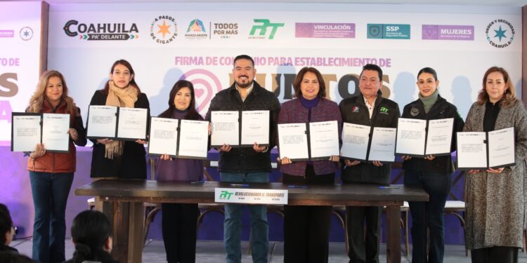 Ramos Arizpe, Coahuila de Zaragoza; 20 de enero de 2026.- El Gobierno del Estado de Coahuila, a través de la Secretaría de las Mujeres, llevó a cabo la firma de un convenio de colaboración para el establecimiento de un Punto Violeta en la primera empresa de transporte “501-RT”, ubicada en el municipio de Ramos Arizpe, como parte de las acciones permanentes para la prevención y atención de la violencia de género en la entidad.