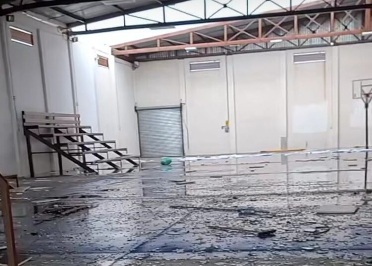 El gimnasio municipal también resultó afectado: perdió todas sus ventanas y sufrió daños en parte del techo, donde las fuertes rachas de viento arrancaron vigas de acero y láminas. Asimismo, se reportaron daños en los paneles solares del asilo de ancianos, entre otras propiedades.